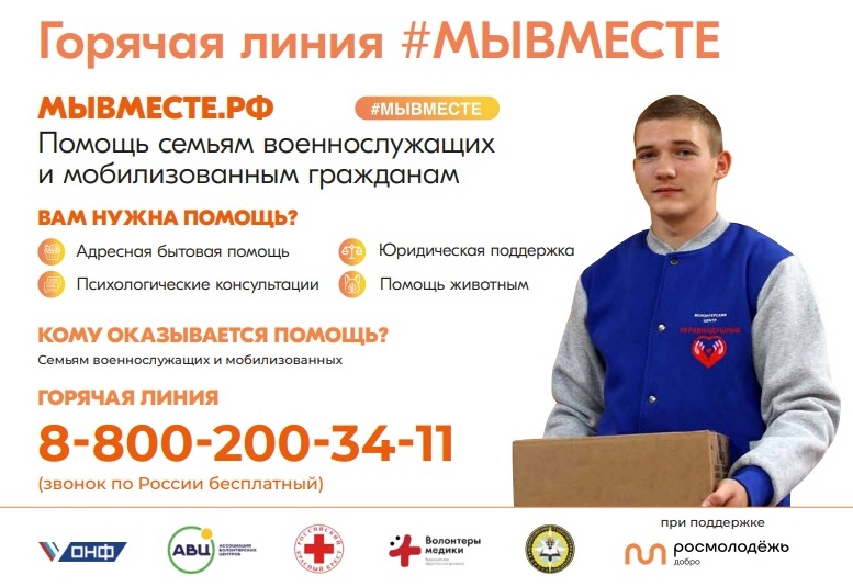 Также запущена работа сервисов народной поддержки: обновленный сайт мывместе.рф и горячая линия 8-800-200-3411